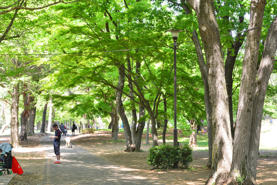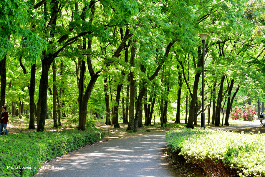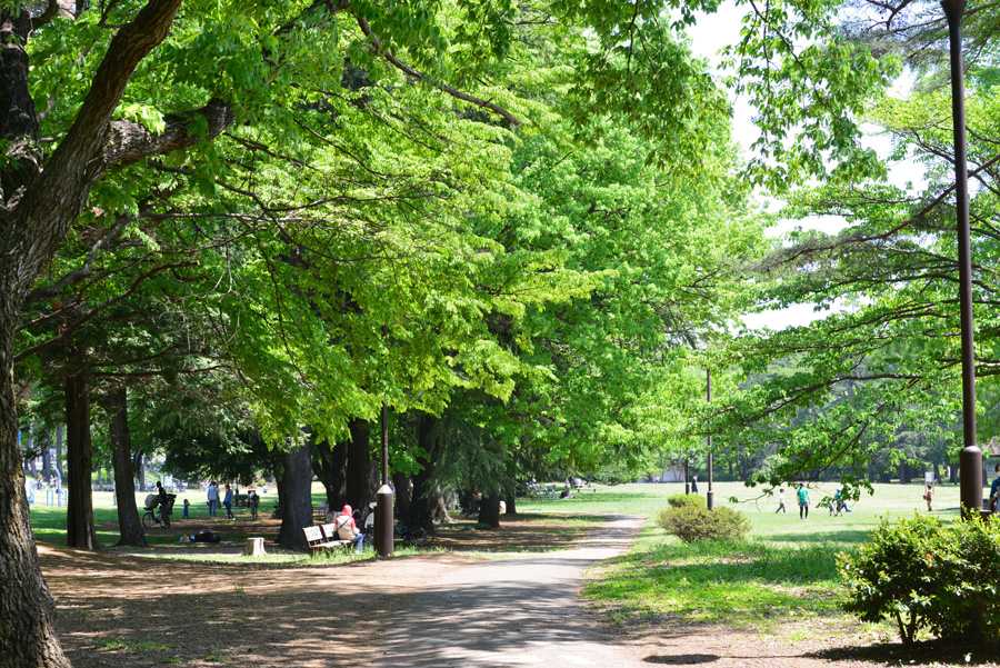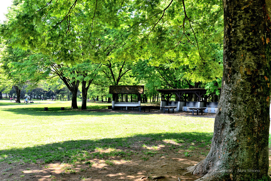 ![]() 5月間近の野川公園は芝生と新緑の木々が目に飛び込んできます。陽射しが強くなるこの頃木々の木陰には人々が各々楽しんでいます。