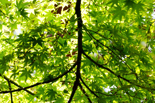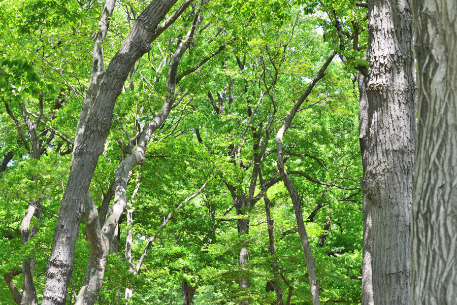 ![]() 冬には葉を落とした木々は青空を覆うくらい若葉を広げています。