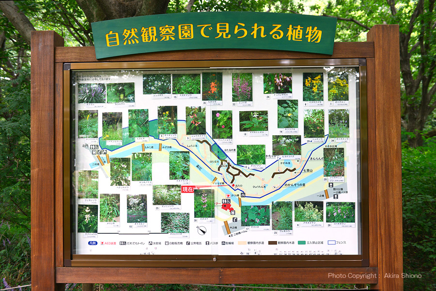 上の地図は、野川公園にある自然観察園の地図で、すぐ上には国際基督教大学の敷地になっています。