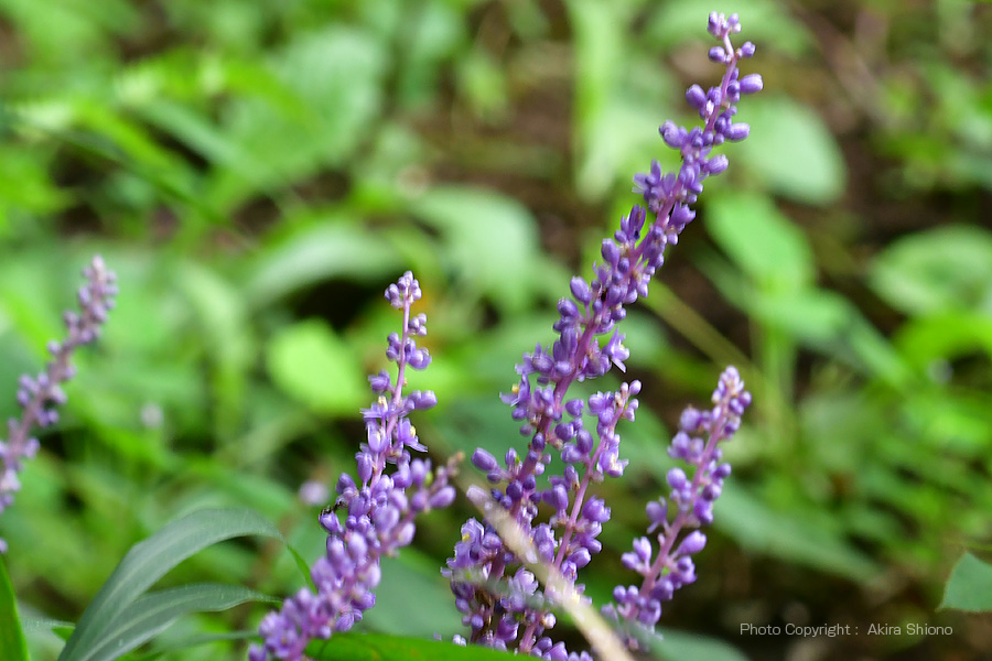 園内に入ると、緑の覆われた地面のところどころに「ヤブラン」が目に入ります。右はコバギボウシ。