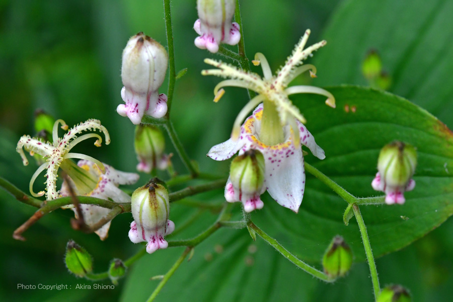 飾り物のような変わった形の「ヤマノホトトギス」と「ツリガネニンジン」