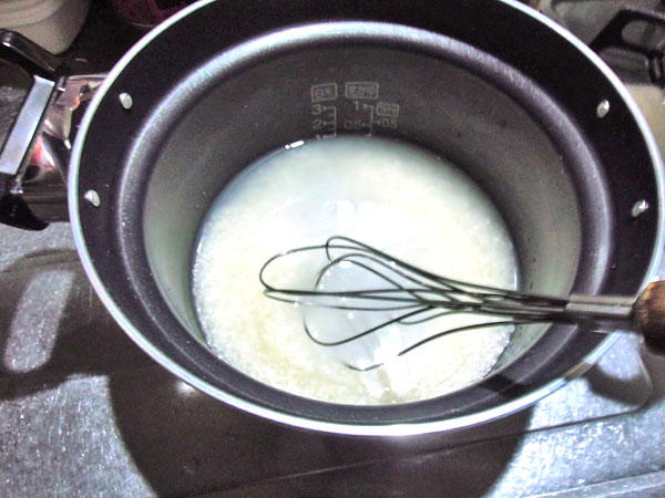 【炊飯に適した鍋とフタ】 専用釜でSiコンロの炊飯機能を使ってみる トップへ ・お米を計量カップで計って、釜に入れます。・無洗米は2回ほど洗い、濁りをとります。 ・お米の量に適した水を、目盛りにあわせて入れます。 ・専用のフタをして、このまま約1時間浸します。