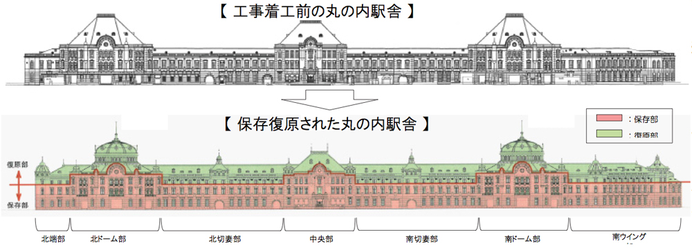 甦った建築物/東京駅丸の内駅舎復原工事 移 動: 東京駅丸の内・八重洲口 東京駅の鉄道 東京駅皇居外苑 東京駅丸の内エリア 甦った建築物/東京駅丸の内駅舎復原工事 リンク: 甦った建築物/東京駅丸の内駅舎復原工事 東京駅丸の内エリア 皇居外苑 東京駅のまわり/丸の内・八重洲口 東京駅丸の内エリア 浜離宮恩賜庭園 代々木 明治神宮 小石川後楽園 新宿御苑 東京・芝増上寺 東京タワー 丸の内駅舎復原工事甦った東京駅 トップへ
