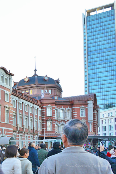 平成24年10月に東京駅がリニューアルされ、予想以上の観光客が訪れ、壁面に映像を投影するイベントが危険なため急遽中止になったりしました。この写真はH24.12.16の他のページにあります浅草など観光したあとで寄ったので夕刻でしたが、ここ東京駅周辺は皇居も近く数多くの観光客が話題の駅舎前で記念撮影をしていました。 東京駅の歴史 トップへ