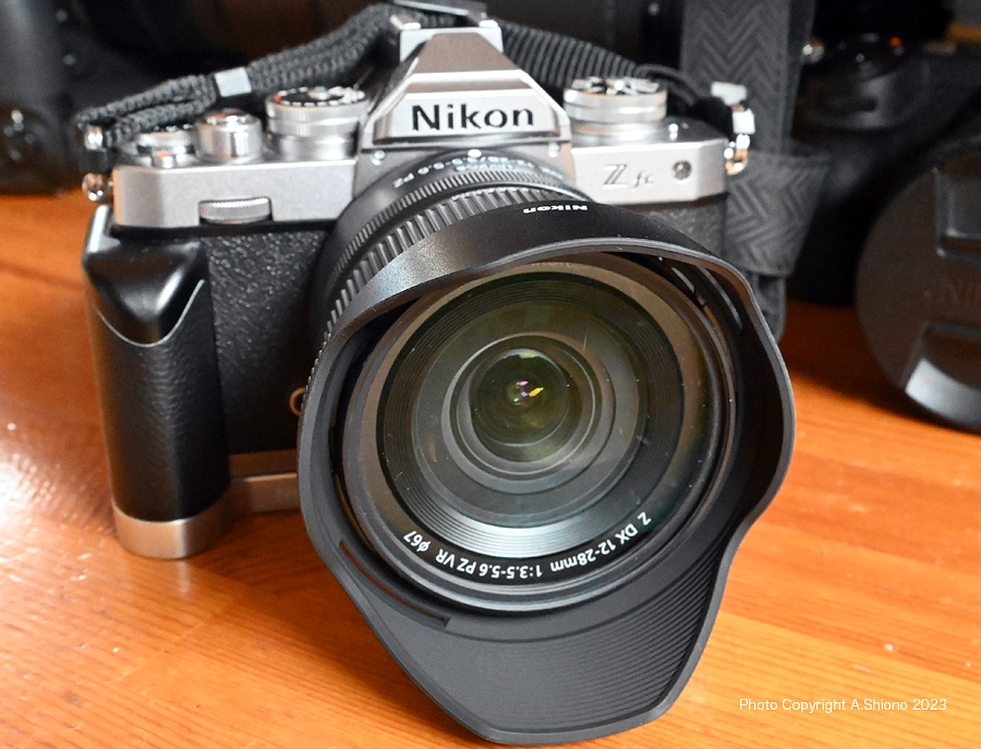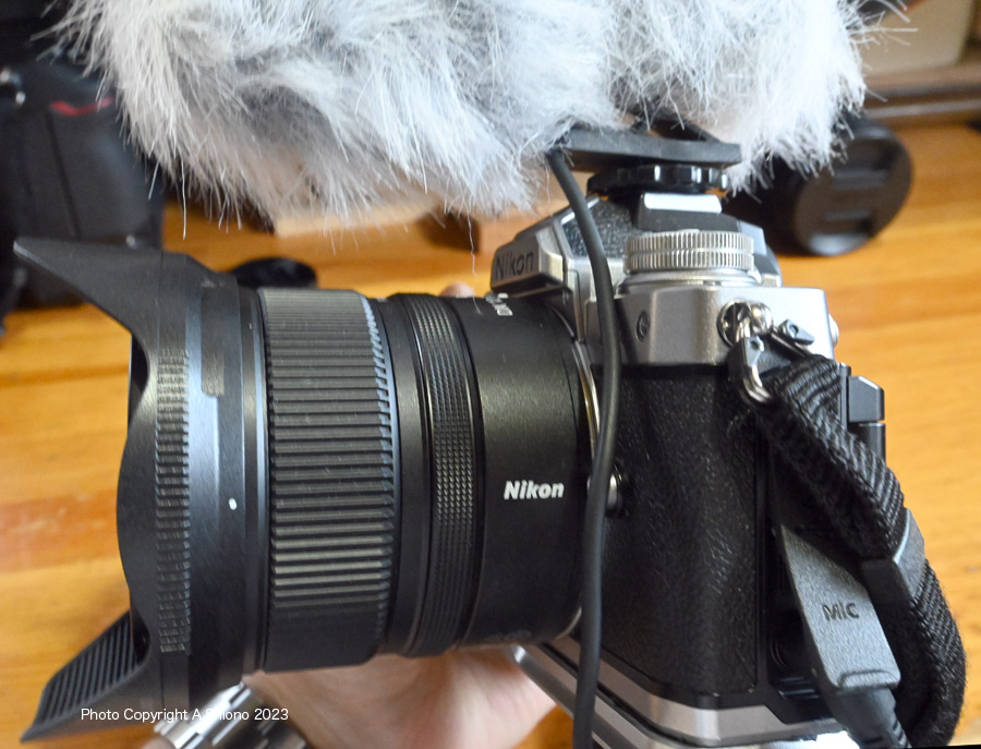 パワーズームレンズを装着したNIKON Zfcに外部マイクにリモコングリップを装着。 リモコンの+.ーボタンでズーム操作ができます。 f DX超広角ズームレンズ Z12−28mmVR撮影画像 トップへ