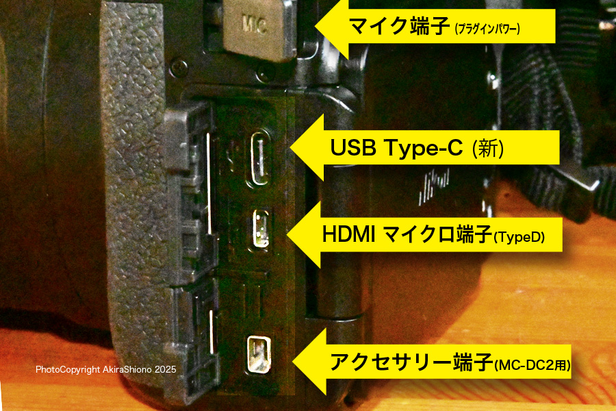 動画に関しては、4K UHD/30pで、外部マイク入力端子を装備しています。インターフェイスはUSB端子が他のZシリーズと共通で主流となっているTYPE-Cに変更され、充電に困らなくなりました。HDMI出力がHDMIマイクロ端子(TypeD)を装備しています。 バッテリーは EN-EL20aで、容量が7.2V 1110mAh 8Whで静止画撮影時は約260コマ、動画撮影時は約1時間10分となっていますが、予備バッテリーが必要かもしれません。