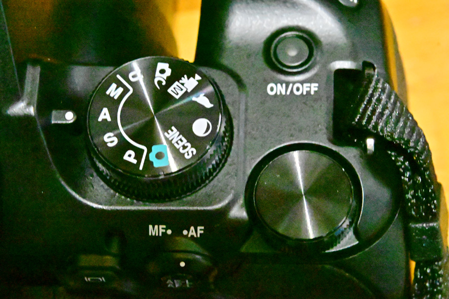 NIKONの一眼カメラでは電源ボタンはグリップ上のレバーになっていますが、このCOOLPIX P1100ではここがズーミングレバーになっています。この様に一眼カメラとは、「似て非なる物」です。左下にCOOLPIX P300操作部の画像を載せていますが、電源スイッチや、ズームレバーは右上面のモードダイヤル右前にあります。電源スイッチは押し込むタイプです。このカメラも同ジャンルなので(以前のジャンルはコンデジ)共通性はありますが、Zシリーズと操作性に共通性はありません。コンデジからの移行には全く問題ない様です。 AFが合わない時やフォーカス調整をしたい場合などはマニュアルにする事があります。レンズ交換式カメラではフォーカス切替スイッチがレンズ側にありますが、P1100はレンズ一体型なので、ボディ背面のファインダー右下にあります。 ちなみに一眼カメラではここは静止画・動画切替スイッチになっていますので、切替操作の慣れが必要と感じました。 三脚使用時にテレ端にすると鏡胴が伸び、重心がだいぶ前に移動します。三脚が鏡胴の下あたりの方が安定します。三脚用のネジ穴がカメラの重心にあった方が三脚使用時の安定すると思います。