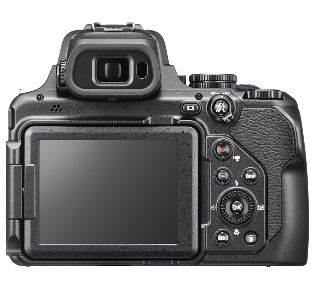 ![]() P1100の正面上とボディ右上面の操作部 ![]() COOLPIXの最新型 P1100の背面部