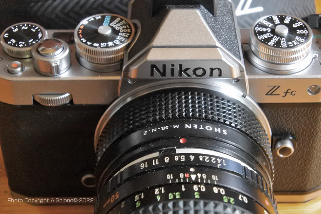 Zマウントは撮像センサーまでの距離が短いので、マウントアダプターをかませば、補正レンズで画質を落とすこと無く他社のレンズを装着することが可能です。ここでは、1973年3月に発売された「ミノルタ SRT-Super」と「ミノルタ SRT-101」で使っていたミノルタ ROKKORレンズを装着してみました。以前Z6購入時に、手持ちのオールドレンズを使えないかと、「焦点工房 M.SR-N.Z」マウントアダプターを購入してありました。 Zシリーズでのマニュアルレンズの撮影方法 トップへ OLDレンズはマニュアル操作 このマウントアダプターは、マニュアルフォーカスなのでピントは手で合わせなければなりません。Fマウントでのピントのマニュアル操作は、ファインダー内に▶︎●◀︎表示が表示され合わないと左右の三角マークが装着すると表示され合焦すると中央の●が現れ撮影者に教えてくれます。しかし被写体から目を離して左下角にある小さなマークを目視で判断するのは非常に効率が悪いものでした。さらに前のフィルムカメラではフォーカシングスクリーンがファインダーの中にあり、磨りガラスの様なスクリーンに映る被写体のピントの明瞭度を判断していました。 進化したマニュアルフォーカス方式 トップへ Zシリーズではオールドレンズで撮影する時にピント合わせ時にマニュアルフォーカスになります。焦点合わせをすると、ファインダー内の被写体の輪郭が、ピーキング表示されます。合焦がどこの部分にあっているか直感的に分かりますので、スピーディにピントあわせができます。さらに正確に合わせたい場合は、拡大表示設定をしておけば緻密なピントあわせが可能となります。 露出に関しては、絞りリングを回すとファインダーはそれなりの明るさになりますが、適正露出にしてくれます。その時に被写界深度はファインダーで確認することができます昔使っていたカメラでは思った様な写真が取るのが難しかったですが、。最新のミラーレス一眼では、ボディーの能力が飛躍的に向上したため、レンズ本来の描画を写し取ることができます。この排出された画像は、フィルムカメラ時代の解像からは思いつかない優れたものです。