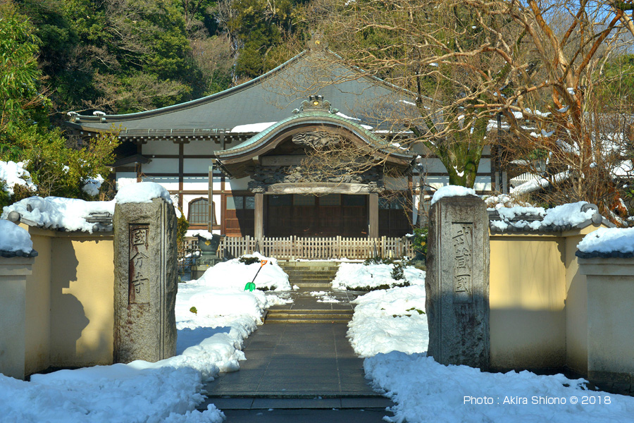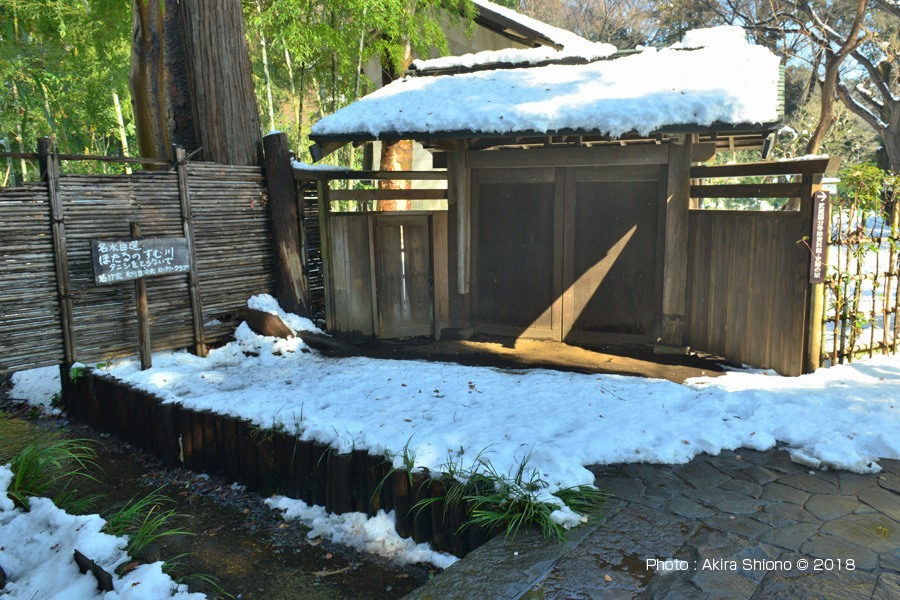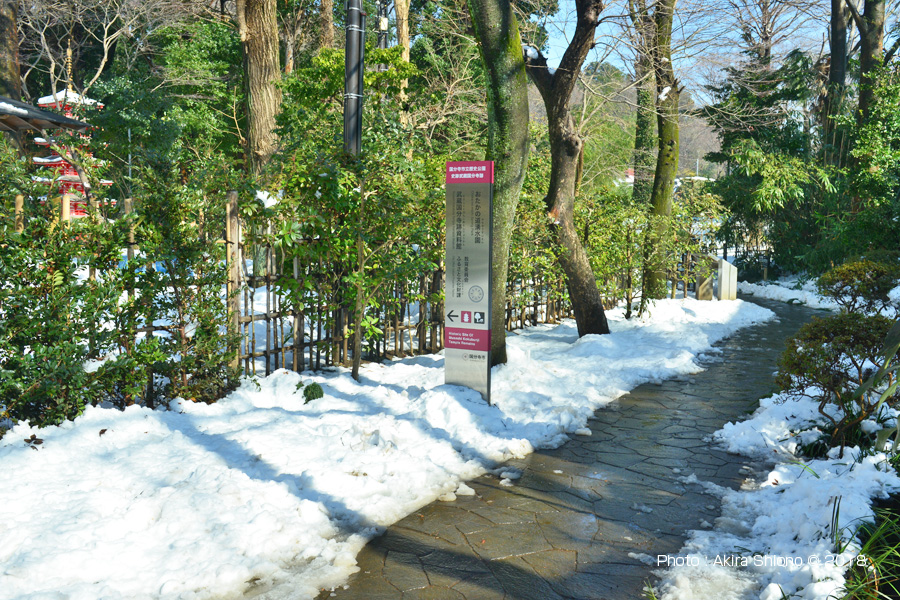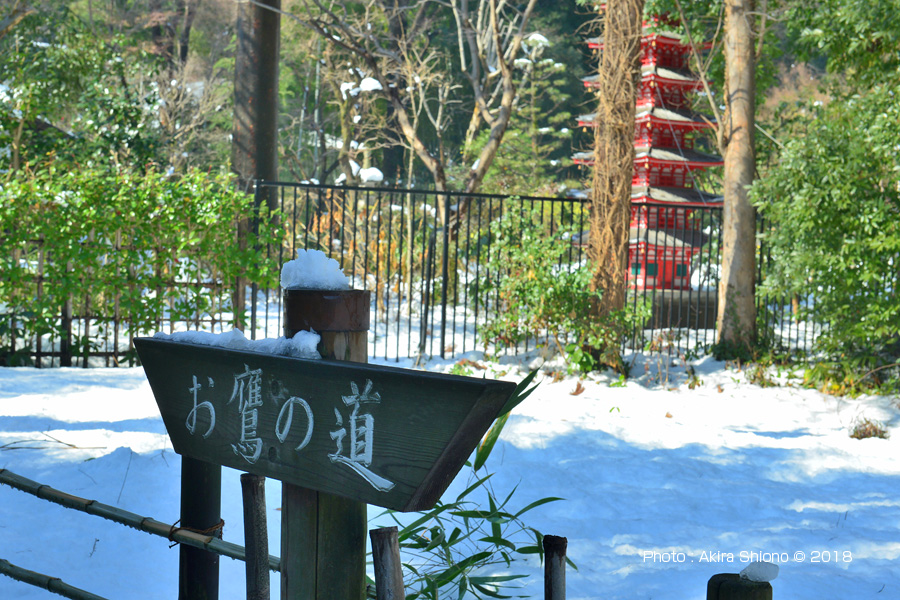 通常の景色が、大雪が降って雪が積もると白い雪で覆われ銀世界が広がります。今年の2018年は1月22日に、35年ぶりといわれた大雪が降しました。住宅の屋根などには分厚い雪が積もり、角がまぁるくなっていました。雪が降って喜ぶのは、子供たちで別世界での遊び方もそれぞれ工夫していました。大雪の翌日の23日に武蔵国分寺周辺をまわって撮影をしてまいりました。 湧水園と改築された長屋門 トップへ ![]() 武蔵国國分寺の本堂の東側に「お鷹の道」の入口があります。