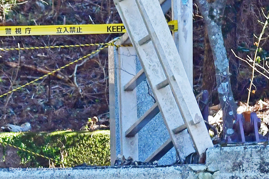 ![]() 御岳小橋の主塔がヒンジの部分で千切れています。右が右岸の橋桁を留めていたヒンジ部(撮影:2020年2月) ![]() 流失前の御岳小橋の主塔と各ヒンジ部(撮影:2019年8月) 撮影:NIKON Z6+NIKKOR 24-70mm/4S,D500+TC-14EIII+AF-S70-200mmf4VR 2019多摩川増水 1 2 3 4 5 6 次は・増水の杣の小橋 リンク: 令和元年台風19号で流失した御岳小橋今と昔 ジャンプ: 奥多摩橋 軍畑大橋 梅沢橋/川井 柳淵橋/青梅市御岳 万年橋/青梅市 神路橋/青梅市 鮎美橋/青梅市 海沢大橋・海沢橋/奥多摩町 柳淵橋/青梅市釜の淵公園 寸庭橋/奥多摩町古里CHSのIROIROサイト:人気サイト トップへ |