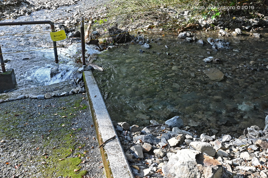 上画像の広場の状態で手前の沢に架かっている橋の下は、大量の砂利で完全に埋められ堰き止められました。 ![]() 2019年の台風15、19号の爪痕で川幅がいっぱいに広がっていて、正面広場の川岸の低木は流されています。 川井キャンプ場向かいの広場の東屋からの景色 トップへ
