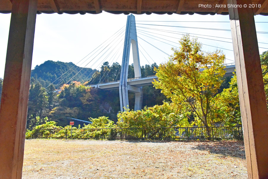 奥多摩町のJR川井駅御の目の前には奥多摩町では大きい斜張橋の「奥多摩大橋」があります。この川井駅の周辺には、川井キャンプ場や北に向かえば丹波川上流部に数カ所キャンプ場がある、奥多摩町に次ぐアウトドアのメッカです。観光の名所としては、川井崩れ堰堤、大丹波川合流部、大正橋があります。 ![]() 大正橋の前身「猿橋」に似た「肘木はし」と呼ばれるもので、橋長七間(14.5m)幅員四尺(1,2m)の立派な木橋でした。