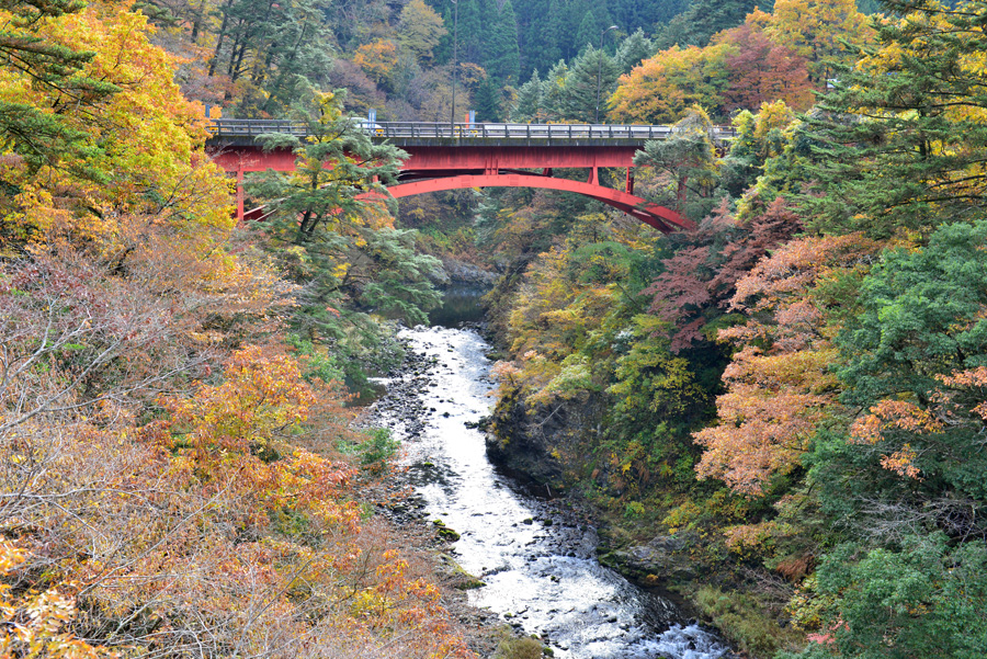 ![]() 愛宕橋から見た下流は荒瀬の白泡が長く、落差がある勢い良い流れが想像出来ます。上流の景色は深い淵が見えます。 撮影:NIKON D800+AFS-NIKKOR 24-70mmG f2.8 NIKON D750+AFS-NIKKOR 70-200mmG f4 VR