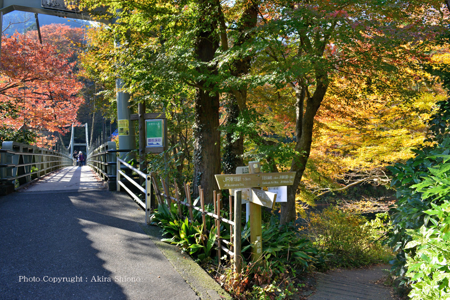 5月と11月の楓橋北側の入口御岳渓谷遊歩道の景色です。