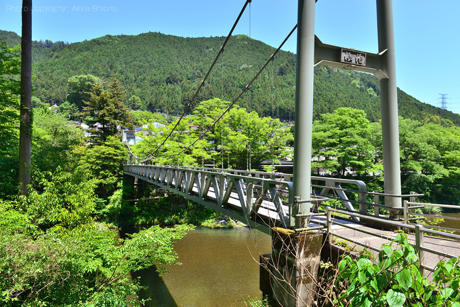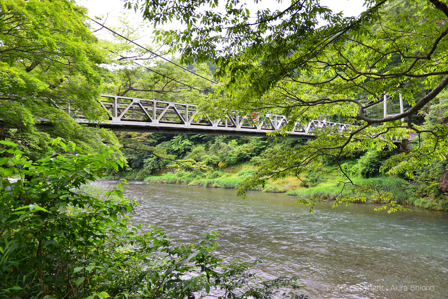 楓橋/青梅市沢井 トップへ ![]() 新緑真っ盛りの左岸下流側からみた楓橋。
