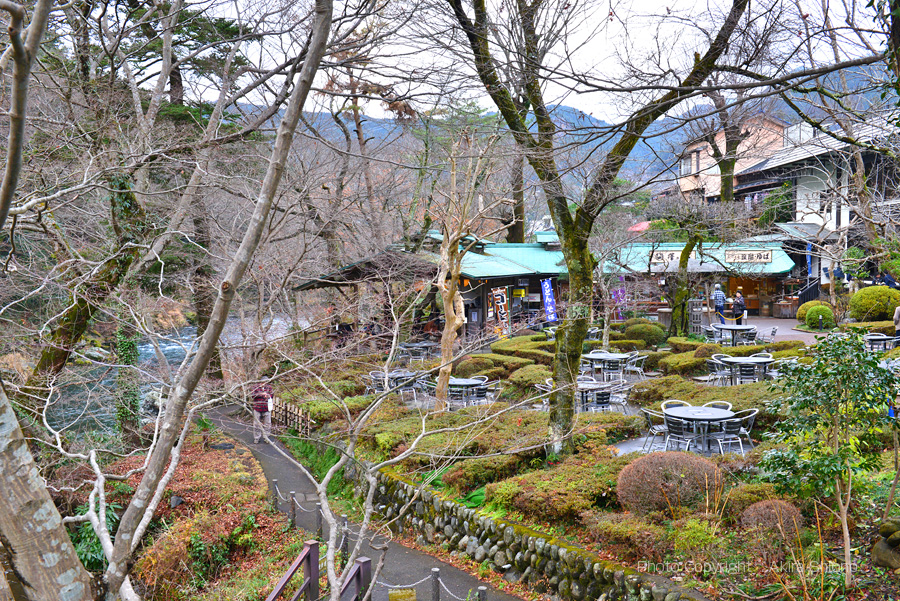 ![]() 桜が咲く頃の澤乃井ガーデンを楓橋からみた景色で右が新緑の景色です。 ![]() 楓橋から見た、冬期の小澤酒造が運営する澤乃井ガーデン(澤乃井園)。