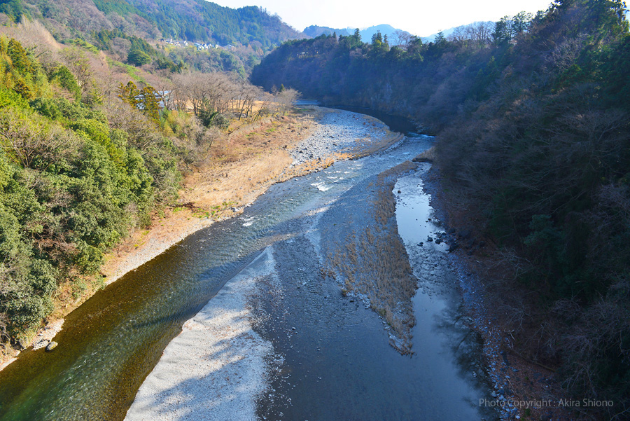 好文橋の上からみた1月の下流(青梅市街方面)の景色。好文橋上からみた1月の上流(和田橋方面)の景色 河原から見た好文橋の景色 トップへ