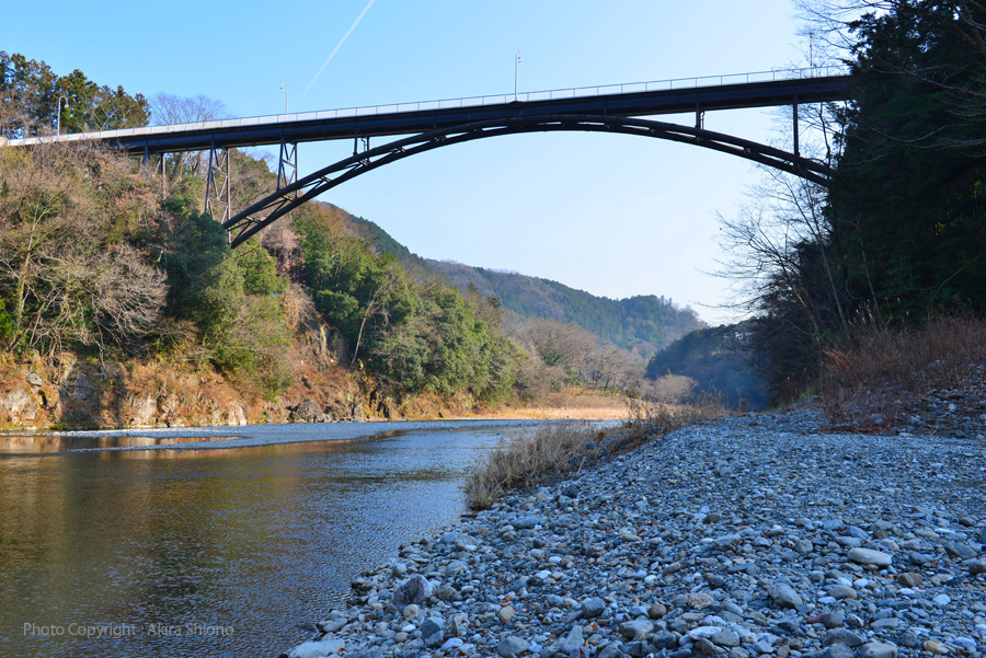 好文橋は青梅市梅郷〜二俣尾を結ぶ、パイプアーチと路面を柱で繋いでいる「スパンドレルアーチ橋」で歩行者専用の橋です。 新緑の好文橋と橋梁標識の設置 トップへ 下奥多摩橋の橋名板と橋上 トップへ 好文橋の下流と上流の景色 トップへ