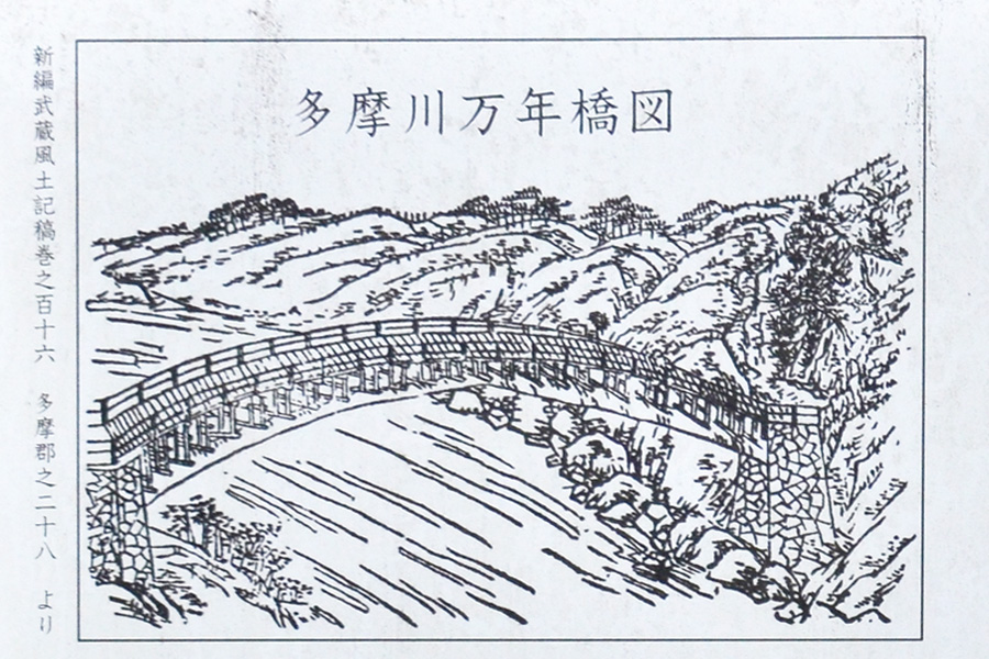 左ー鵜の瀬橋の直下の河原から下流側の河原から鵜の瀬橋の景色。右ー鵜の瀬橋の右岸の橋台部分です。 ![]() 御岳橋上から下流を眺めた秋の景色で右の黄色に色付いたあたりが玉堂美術館。 新緑〜梅雨の時期の御岳橋 トップへ 橋の歴史:旧御岳万年橋の跡 トップへ 御岳渓谷遊歩道を進み、御岳駅近くになると、御岳小橋、御岳橋が見えてきます。この辺りは風光明媚で、青梅観光の代表的な観光スポットとなっています。この遊歩道をさらに西に進み、御岳橋の下をくぐりさらに前に進むとこの「旧御岳万年橋」の説明看板があります。
