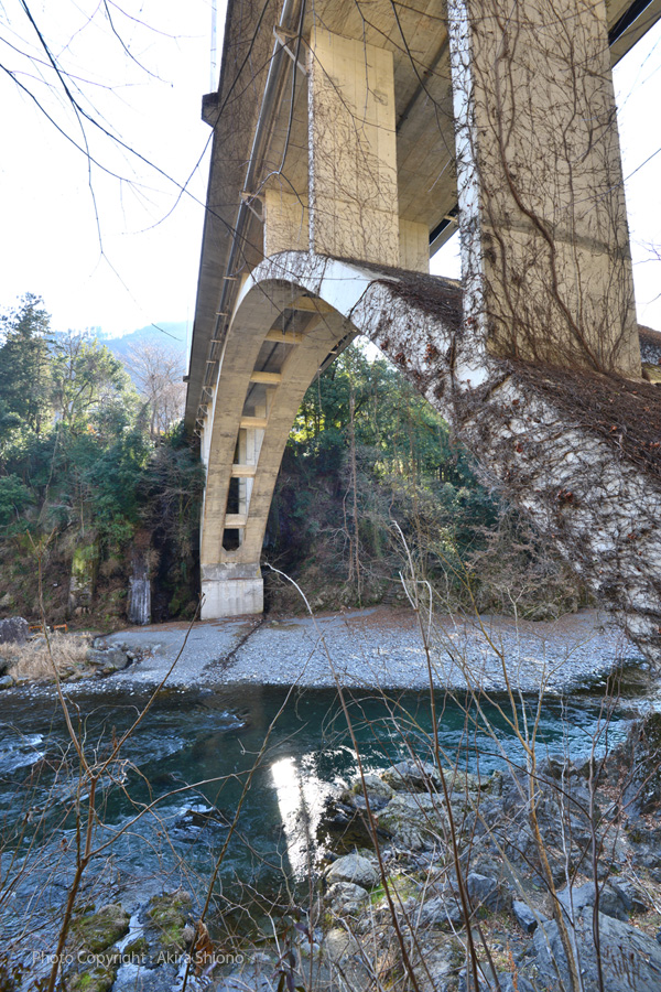 御岳橋は、JR青梅線の「御岳駅」の目の前に架かる、青梅街道と吉野街道を繋いでいるRCコンクリート製のアーチ橋です。JR青梅線の中でも、御岳山や御岳渓遊歩道など屈指の観光名所となっています。 御岳橋の橋上と橋名板 トップへ