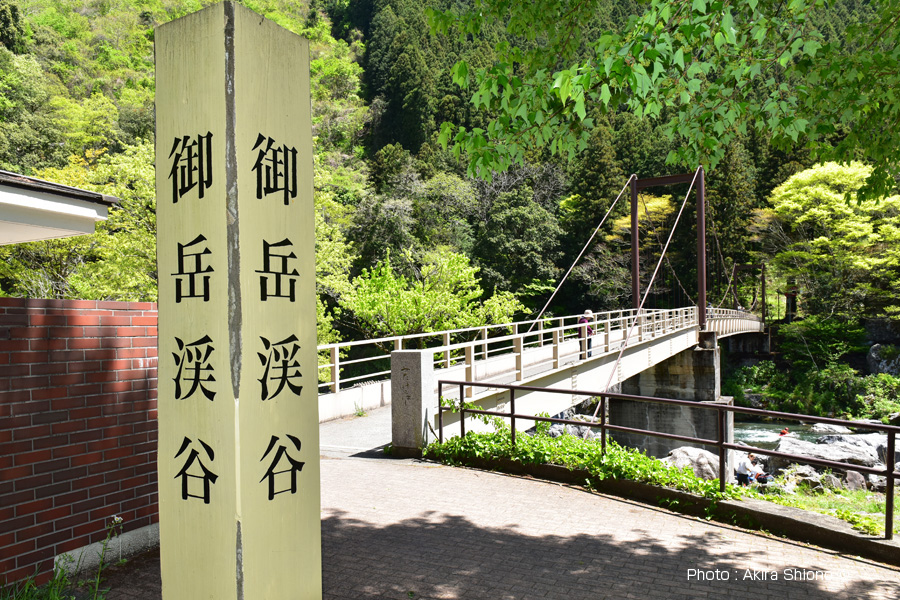 御岳小橋左岸下流の御岳渓谷遊歩道からみえる御岳小橋 御岳小橋の近くには、まゝごと屋