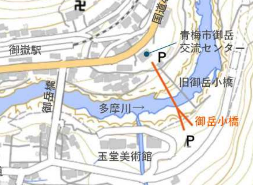 待ちかねていた、令和元年(2019)に襲来した台風19号の増水で破壊された新・御岳小橋の建設の計画が発表されました。詳しくは、完成予想図の下のリンクにて確認できますが、こちらの情報に寄ると、旧御岳小橋の水面から橋桁までの高さが新御岳小橋では以前より5m嵩上げになる設計となっています。 形状は、「2径間連続プレストレストコンクリート斜張橋」という構造で、想像図では青梅市にある鮎美橋に近い形状になるようです。吉野街道側は、平面図から見ると橋桁主塔から南側は二股に分かれています。また、青梅街道側は、今まであった御嶽山行きの西東京バスの乗り口の裏手の、御岳小橋に向かう坂道よりさらに東側に接続するようです。橋長は両端が今までより高い位置に接続するためか、旧御岳小橋の約2倍になるようです。 御岳橋から見た撤去された御岳小橋あたり 2025.5.18 トップへ