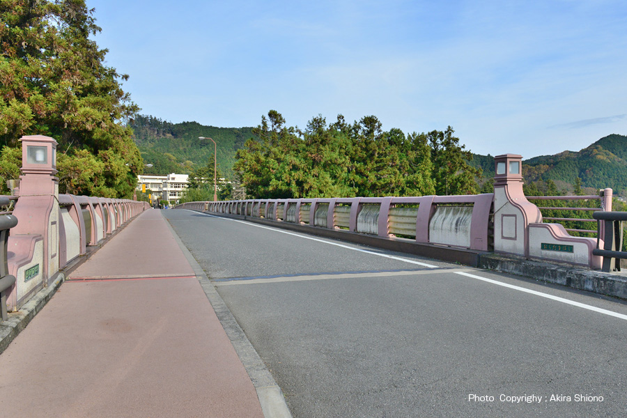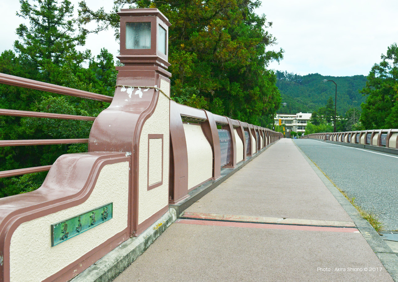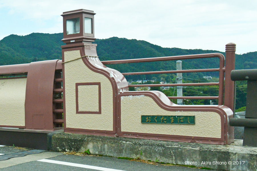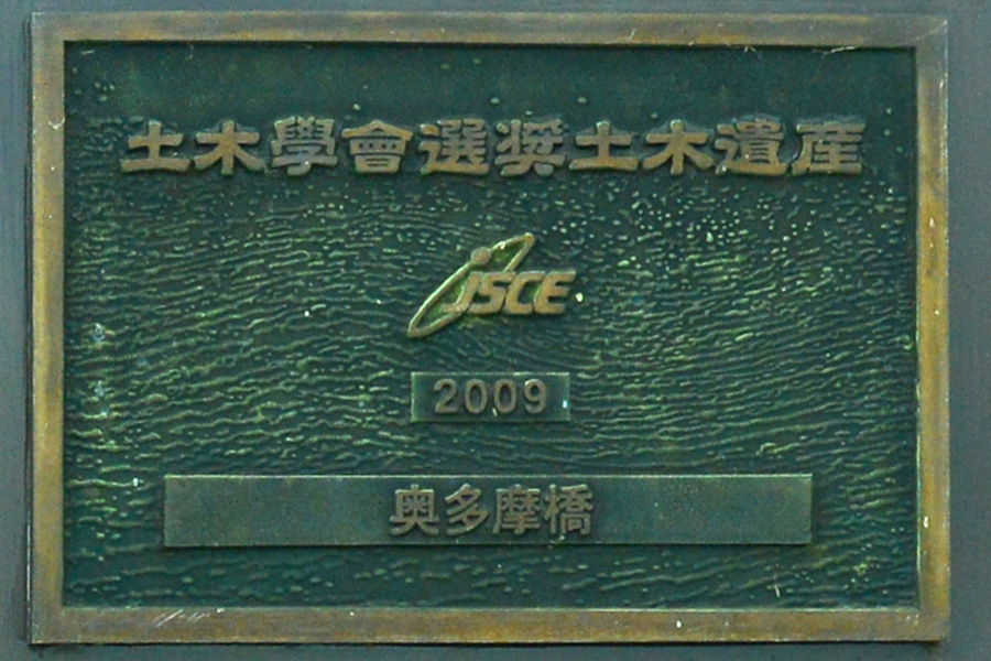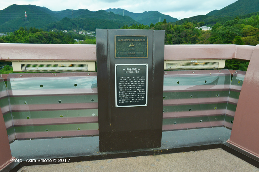 奥多摩橋の左右3箇所ある展望デッキの西(上流)側には、『土木学会推奨土木遺産』のプレートが掲げられています。 奥多摩橋の化粧直し トップへ
