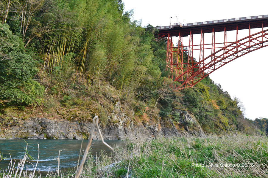![]() 東(右岸下流)からみた奥多摩ばしの遠景と南の魚腹トラス構造で北側にもあります。
