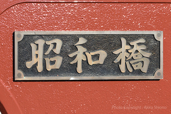 昭和橋の右岸には、橋名・河川標識が建てられています。