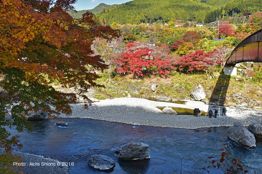 遊歩道から見た紅葉の時期の鵜の瀬橋 トップへ