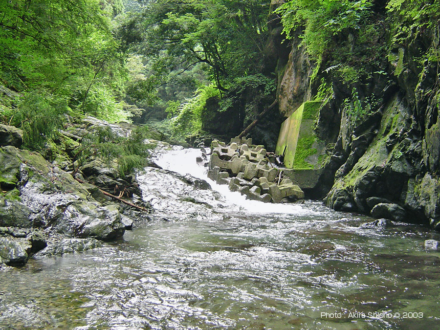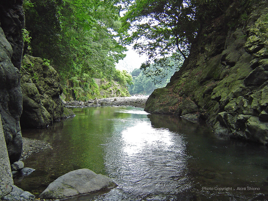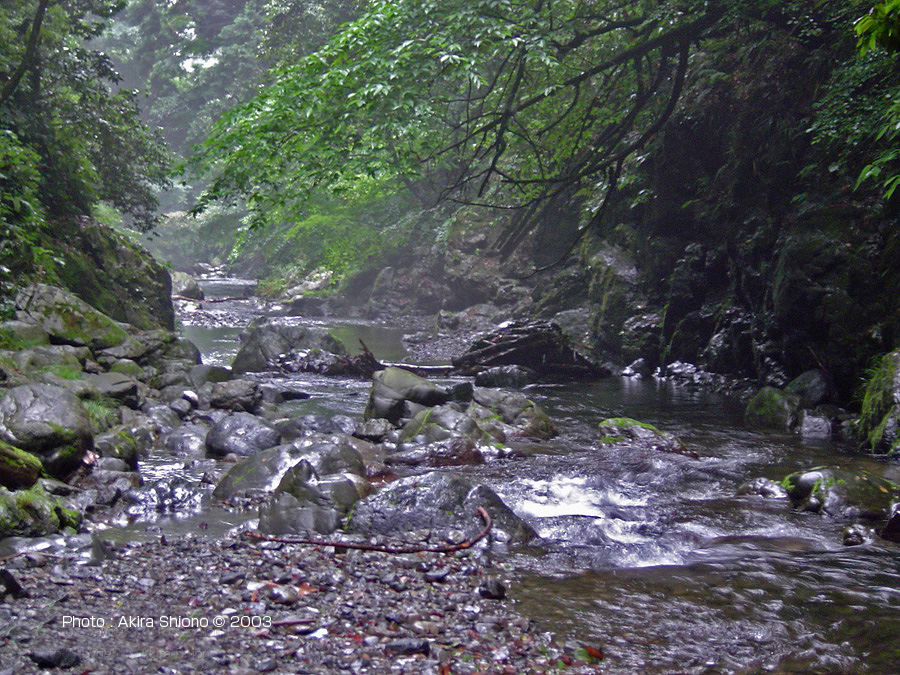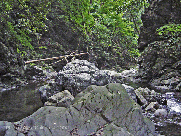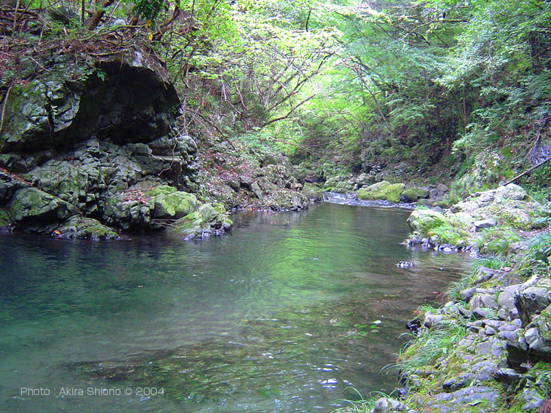 ![]() 大丹波川は谷が深いので、下流でもすでに上を通る道まで20m位はあり、登り口はありません。 大丹波川の中流 トップへ 大丹波川は、都道202号線沿いに流れている川ですが、谷が深く川にはなかなか危険で降りる事ができません。しかし中流には一部斜面が緩い所がありますので、川の景色を観ることが出来ます。 大丹波川上流の景色 トップへ 都道202号線沿いをさらに上流へ向かうと、大きな岩が折り重なって迫力のある風景に変わってきます。キャンプ場から上流側を川沿いに上流に向かうには4m四方くらいある岩をよじ登り、乗り越えなければいけません。 大丹波川国際虹ます釣場 記事2004.1.11 トップへ