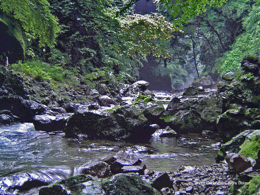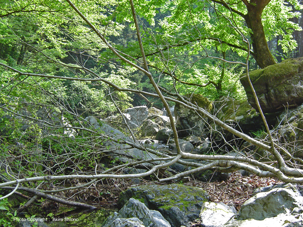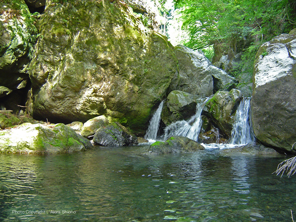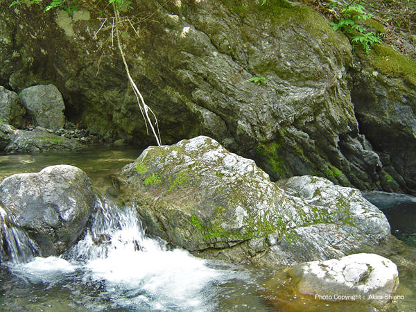 一番上の写真が、奥多摩大橋の下流で多摩川と合流する大丹波川の下流部分です。すぐ上の写真は、渓流釣りをしていた時に運良く淵を渡れ徒渉出来た時の写真です。谷が深い為に薄暗く湿気が非常に高く不気味な場所です。