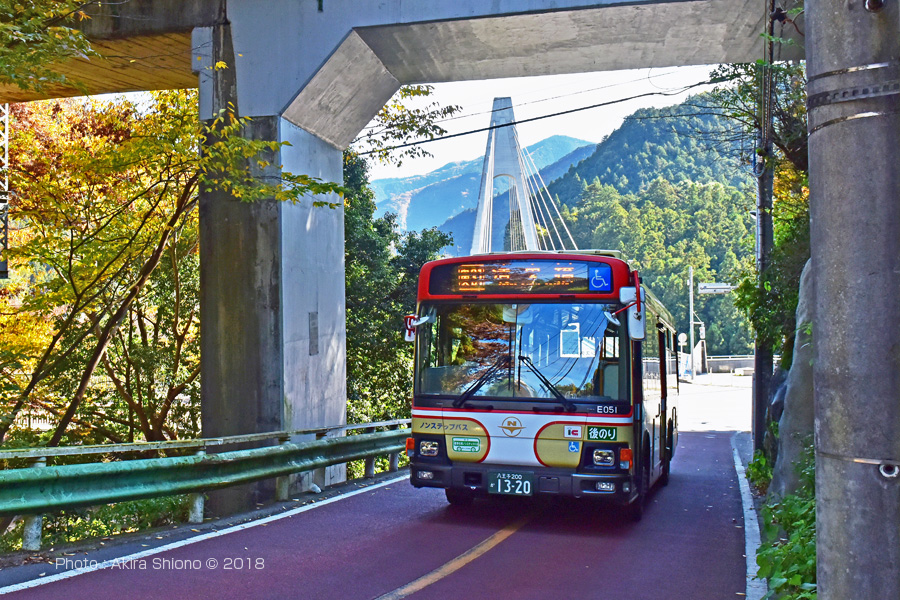 大丹波川は、JR青梅線の川井駅の西側に架かる青梅線の「大丹波橋梁」の下の深い谷を流れて、多摩川に合流する支流です。隣り合わせに平行にある『大正橋』は、青梅街道に架かる橋です。この橋は川井駅近くの青梅街道の『川井交差点』東側の大丹波川が深く削った谷に跨る橋で、下を覗かないと気がつくことが少なく、知らないで通り過ぎる方が多いです。大丹波川は、この2つの橋の下を流れています。 大丹波の山奥へ向かう西東京バス トップへ 奥多摩駅の3番バス乗り場から清東橋行きの「西東京バス」が出ています。また、JR青梅線の川井駅の大正橋近くから「清東橋往き」のバス停があります。このバスは、大丹波川に沿いにある「上成木川井線」を清東園キャンプ場近くの「清東橋」終点まで大自然の中を通り向かいます。 川井バス停 多摩川に注ぐ大丹波川の合流付近 トップへ 秘蔵画像:大丹波川下流の景色 トップへ
