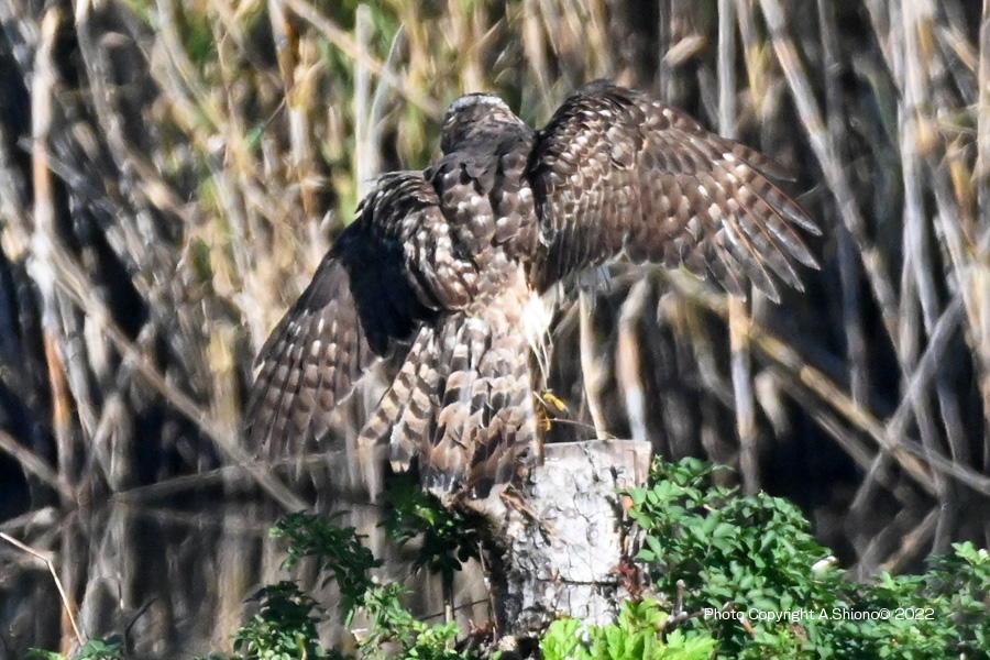 オオタカ着地後周囲を確認 撮影:NIKON Z50+TC-14EIII+AF-S200-500mmE f5.6 1050mm相当 ISO3200 1/4000 F/10 手持ち撮影