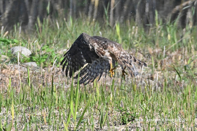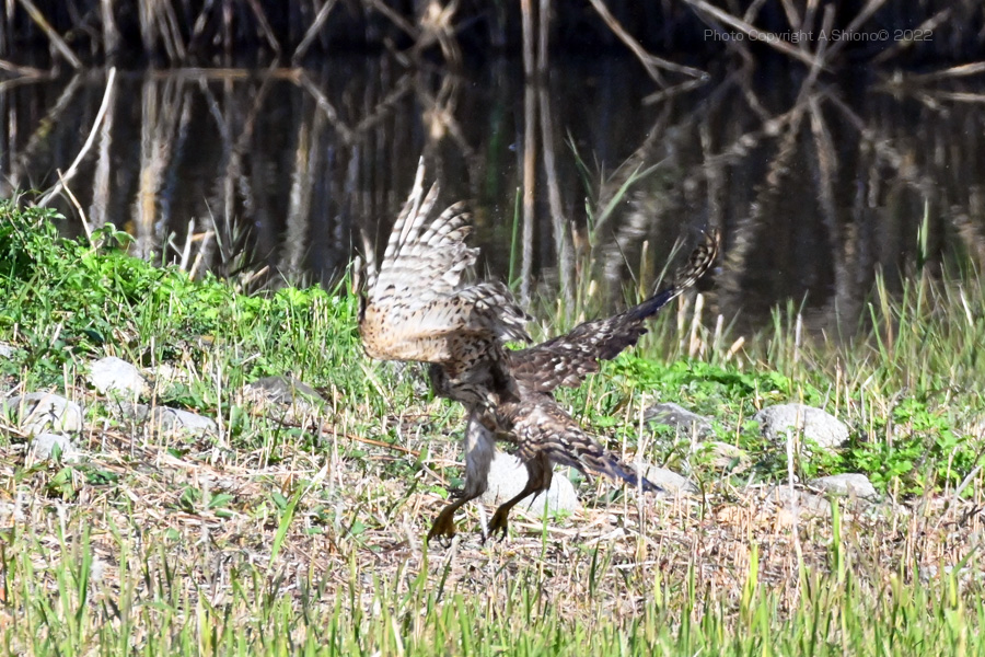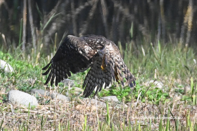 しばらく地面にいたオオタカが飛び立ちました。(オオタカ羽ばたき1)