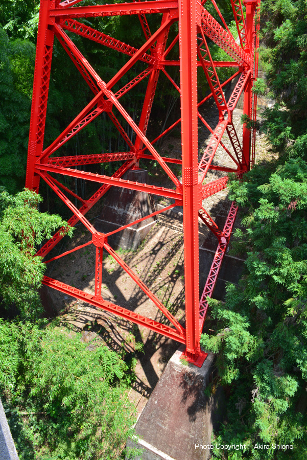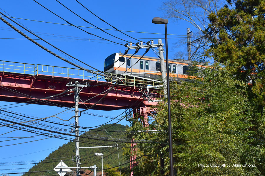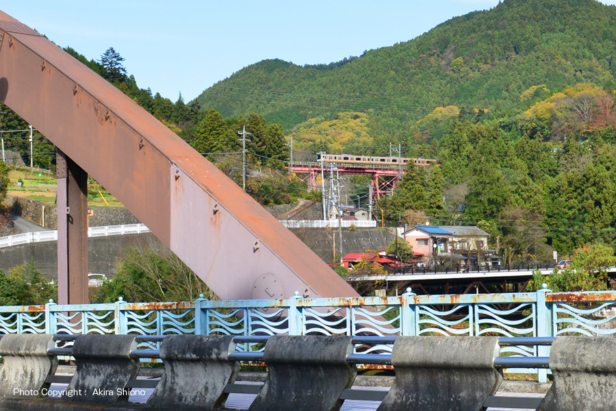 左ー真下から見た橋梁と線路が見えます。 右ー骨格になる鉄骨の塗装は風雨と紫外線でかなり傷んでいます。 軍畑駅方向からJR青梅線の電車が奥沢橋梁に入りました。 軍畑駅方向からJR青梅線の電車が、奥沢橋梁を渡り終え二俣尾へ向います。 移 動: JR青梅線:奥沢橋梁 景色に映える塗替え後の奥沢橋梁 鉄橋を近くから見る 塗り替え前の奥沢橋梁
