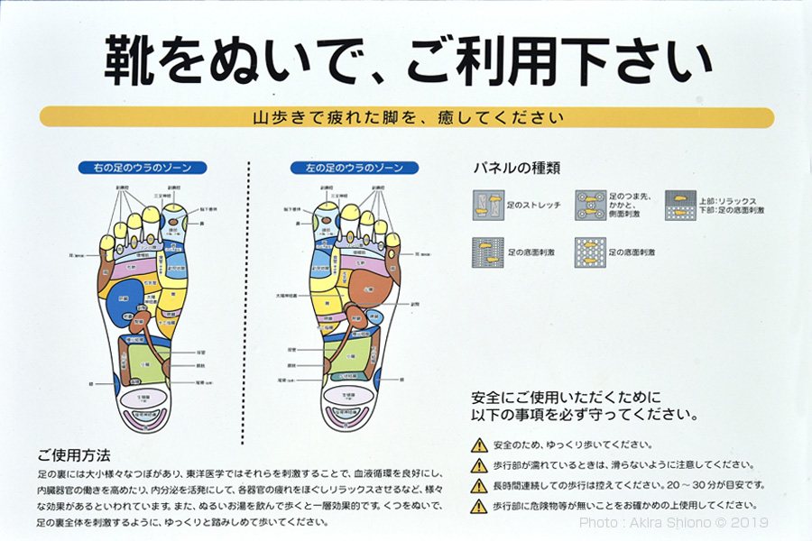奥多摩湖の小河内ダム放水門の近くの公園には、人間日時計と登山の疲れを癒す「足つぼエリア」と奥多摩湖のヒストリーが石碑になっています。 |