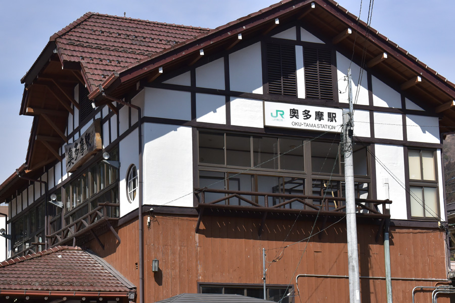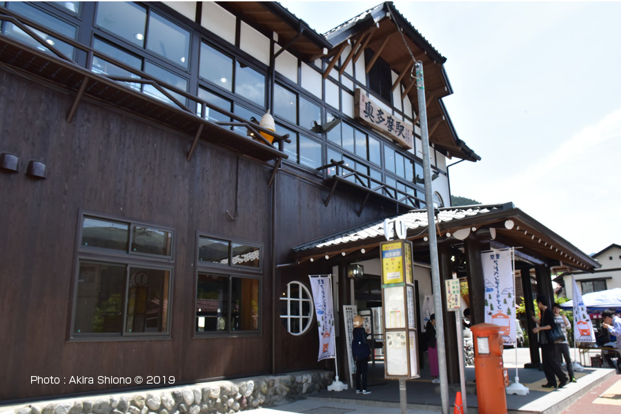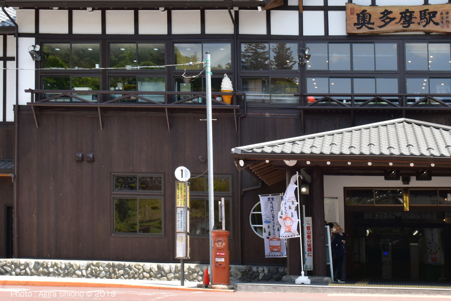 JR青梅線 奥多摩駅リニューアル z取材:2019.5.5 移 動: 周辺の見どころ キレイになった駅 今までの外観 大きく変わった所 大きく変わった駅内部 奥多摩駅の歴史 バス乗り場と観光案内所 リンク: 氷川遊歩道 奥氷川神社と氷川三本杉 もえぎ橋 もえぎの湯 周辺の見どころ キレイになった奥多摩駅 トップへ
