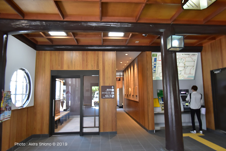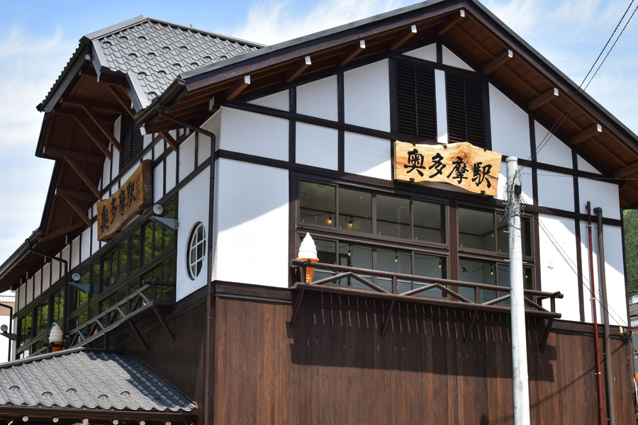 JR青梅線の西の終点である奥多摩駅が、2019.4.13にリニューアルいたしました。下の画像が2019.5.5に撮影したもので、下にある今までの駅から、壁面が茶色からコントラストがはっきりした焦げ茶色に変わりました。変わったのは色だけでなく、本駅舎の内部も改装されています。奥多摩駅が風光明媚な観光地が多く、周辺の観光のおしゃれな拠点として生まれ変わりました。 今までの奥多摩駅の外観 トップへ 大きく変わった奥多摩駅の箇所 トップへ