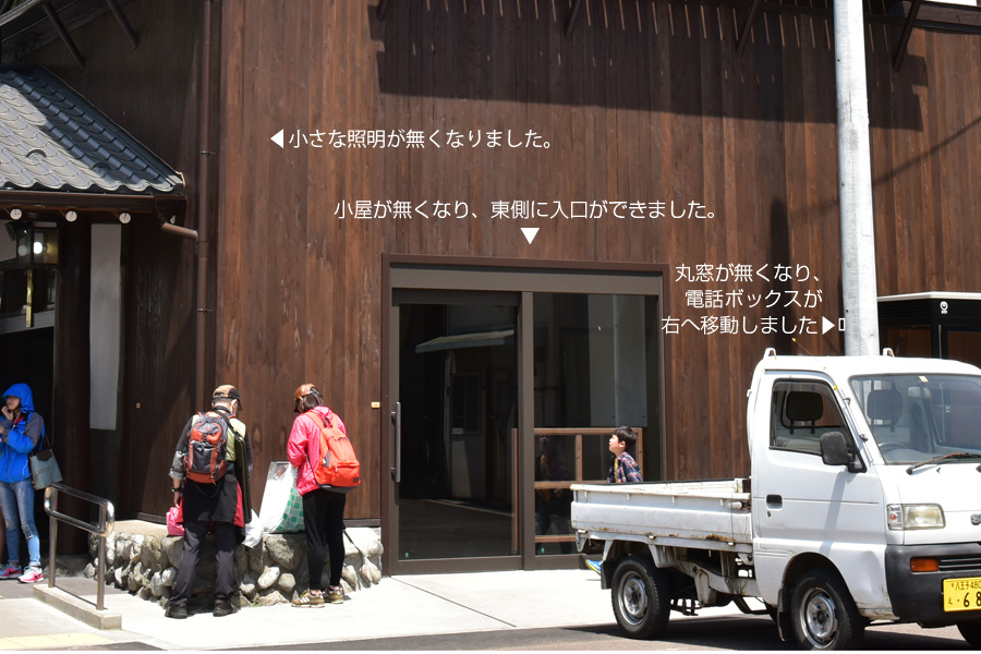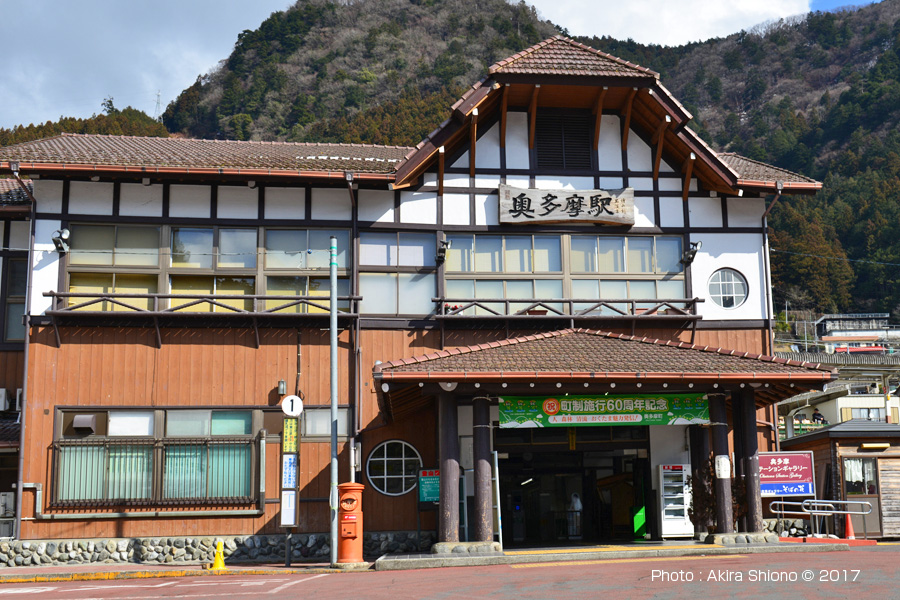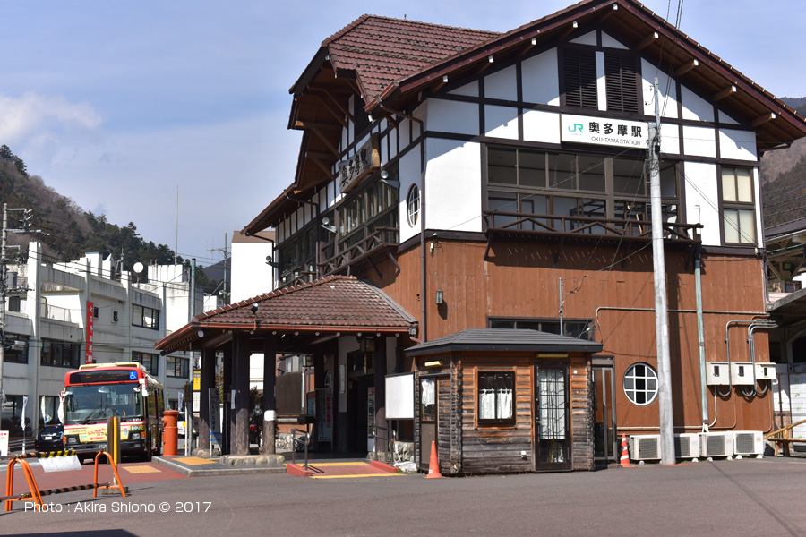 ![]() 2017年3月の東側から見たJR奥多摩駅の駅舎の1階と、改装後2019年5月の奥多摩駅です。