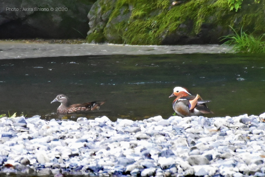 水しぶきを飛ばして水浴びをするオシドリの♀ (画像クリックで拡大します) NIKON D500 +AF-S70-200mmG VR f5.6ED 設定: ISO10000, 1/640/F9/-0.3段 180mm相当 トリミング 水辺で目にするオシドリ トップへ ![]() 池で休むオシドリのオス (画像クリックで拡大します) NIKON Z6II+FT-Z+TC-14EIII+AF-S200-500mmE VR f5.6ED 設定: ISO6400, 1/500/F11/0段 FX 700mm トリミング 固定撮影 オシドリはカモ目カモ科のオシドリ属で、河原や水辺で比較的よく見かける野鳥です。漂鳥で季節によって国内を移動します。 上の写真は3月の中旬に撮影したもので、その後4月をすぎると姿が見えなくなりました水辺でよく見かけるカルガモより一回り小さく、オスは多色使いの色彩がとても派手な水鳥です。それに対してメスは下の写真にあります様に、産卵、子育てをするために安全な景色に溶け込む様な地味な色をしています。 上の画像は約2年前に軍畑辺りで撮影したオシドリですが、2019年の10月に襲来した台風19号の爪痕が大きく、軍畑辺りが入口の御岳渓谷遊歩道はこの後2020年の3月まで封鎖されていました。私が訪れた20年6月の下旬には、すでに御岳渓谷遊歩道の軍畑側の入口が解放されていました。しかし、この遊歩道は、楓橋下流にある岩盤に設置された鉄製の梯子橋が流れで歪み壊れてしまっていました。こんなことで状況を確認した後に、戻ることにしました。 3月になって池にやって来たオシドリ トップへ