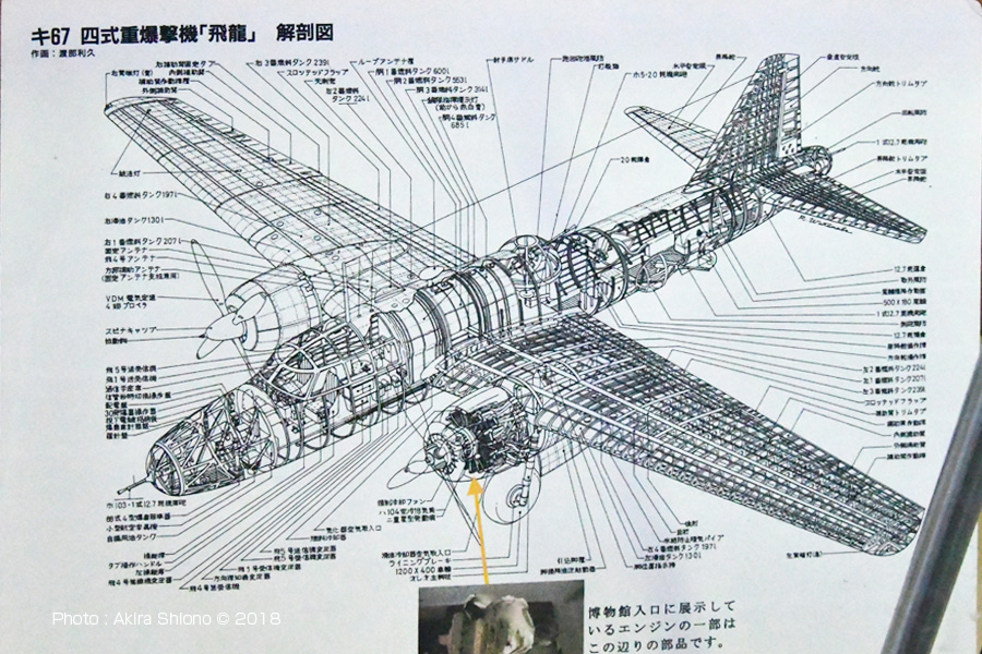 ![]() 墜落したB29と日本陸軍の「飛龍」のエンジンの残骸