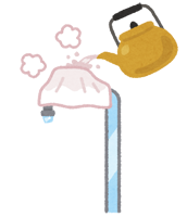 厳冬期になると室外にむき出しになっている水道等の配管は、外気温が氷点下になると凍結して水やお湯が流れないようになる時があります。ここで家の周りを見回して、配管の状態を確認してみると予防になるケースがあります。 こんな氷点下の時に室外の水道の蛇口が凍結してしまい、お湯をかけることで凍結箇所を溶かして復帰したことが何回もありました。※気温が低すぎる時は、水道管が破裂する場合がある可能性があります。(現在は下でご紹介しています「蛇口用ヒーター」問題は解決しています)水道の配管凍結の場合は、むき出しの配管に同じようにお湯をかけると段々溶けてきます。これによって、氷の栓が解凍され水流が戻ってきます。寒くなるたびにこれをやっているのは大変ですので、下記でご紹介しています太さにあった「耐熱保温チューブ」か『水道凍結防止帯』を施行しておきますと安心です。