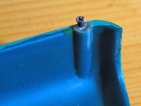 サイドカバーは1.5mm径2mm程度のプラのピン状のものでフレームの穴に付いていますが、これも折れてしまっていましたので、1.5mmのビスをマイクロドリルで穴を明けて取り付け、フレーム側の穴には、精密ネジの頭が丁度入るくらいにネジ穴を加工してあります。