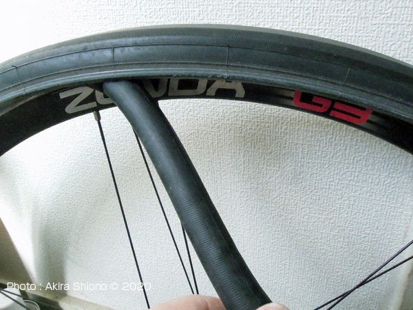 細幅タイヤの空気抜け ▲TOP さて、ロード自転車に乗ろう!出かけたものの、帰る頃に後輪からグニョグニョとしたものを感じました。止まって後のタイヤを指で潰してみるとかなりの空気が抜けているのがわかりました。一応携帯エアーポンプがあったので、空気を足して走り出し近い距離でしたのでどうにか辿り着きました。自転車に乗り始めて少し走り、・・・パンク?という事がまれにあります。この空気抜けには、尖ったものがタイヤを突き抜け、チューブに穴を開けるいわゆる「パンク」と、バルブ周りの空気漏れでこれは、英式バルブではムシゴムの劣化で、隙間から空気が漏れる場合がほとんどです。稀な事例として、チューブ製造時に貼り合わせの境目が裂けての空気漏れがありました。 ここで取り上げるチューブは、主にロードレーサーや中価格帯以上のMTBに使われているフレンチバルブタイプです。このフレンチバルブには2タイプがあって、一つは、プランジャー(弁体)がバルブステムと一体になっている「固定式」とプランジャー(弁体)が交換出来る「バルブコア」タイプがあります。前者は弁体のトラブルのみの時でもタイヤ全体を交換しなければなりません。後者の「バルブコアタイプ」は部品のみの交換が出来ますのでリーズナブルです。 空気抜けの原因を探る ▲TOP