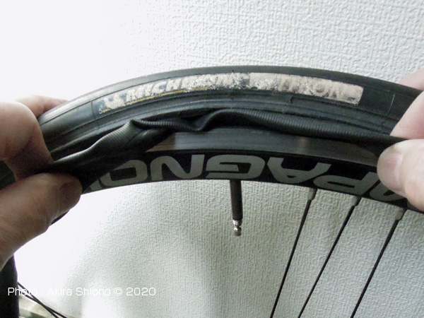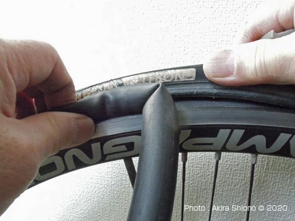 バルブの位置は、タイヤをめくり、チューブを露出させ押し出します。 ![]() バルブ側からタイヤの内側に張り付いてしまっているチューブを引き剥がします。 パンク修理の時に必要な工具 ▲TOP