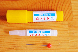 - 瞬間接着剤を断面に塗布します。30秒ほど圧着して固定します。