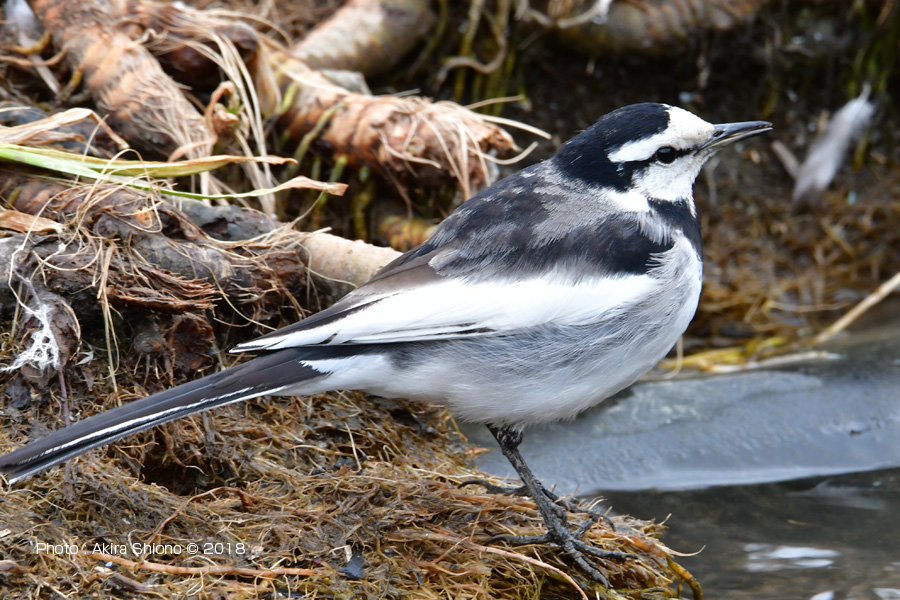 ![]() 枝先で温まるカワセミと湿地で餌を探すハクセキレイ