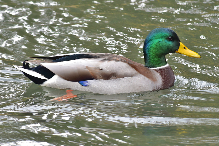 ![]() 冬が近くなるとやってくるマガモとカルガモのヒナ ![]() 姿見の池で泳ぐオシドリのオス。